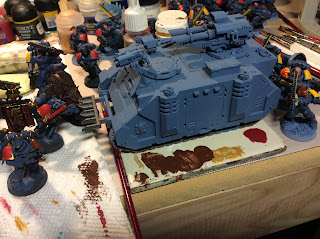 Although the elite Space Marines of the 40th Millennium are supposedly too "l33t" to require or desire camouflage, the old soldier in me bristles at the thought of any equipment entering a combat zone in "parade gloss" paint schemes.